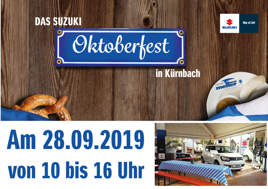 Wir laden Sie herzlich am 28.09.2019 von 10 bis 16 Uhr zum Suzuki Oktoberfest nach Kürnbach ein.