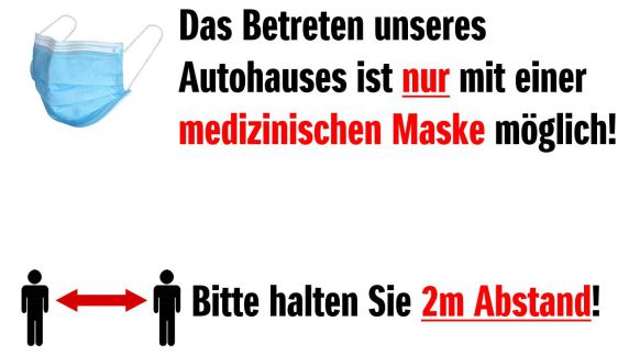 Der Besuch unseres Autohauses ist allerdings nur unser Einhaltung der vorgeschriebenen Auflagen möglich: